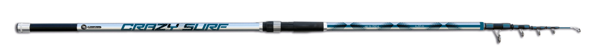 Canna Fishing Ferrari Crazy Surf. Ultima novità dedicata alla pesca a surf casting. Disponibile in tre azioni a scelta ed una lunghezza di 4.20 metri. Telescopica, in 5 sezioni, leggera, ben bilanciata con componentistica di qualità. E' una canna telescopica indicata per la pesca a surf casting. Realizzata in carbonio di qualità, anelli rilegati, leggera e ben bilanciata. Placca porta mulinello a vite. Viene venduta munita di fodero in cartene e copri anelli.