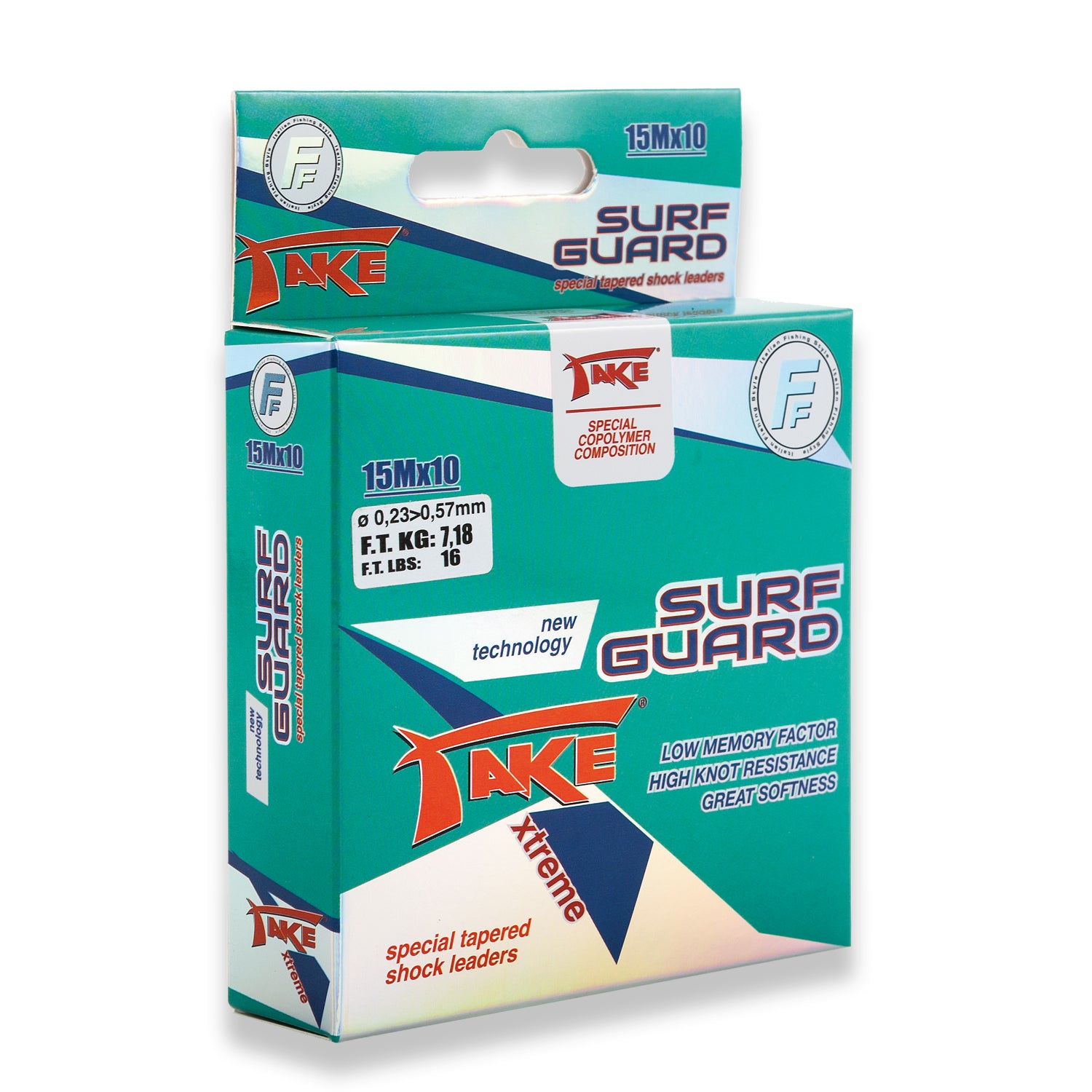 Il Take Surf Guard è un fluorocarbon di alta gamma, disponibile in spezzoni da 15 m, progettato per pescatori esperti e per le esigenze del surfcasting. Invisibile in acqua, garantisce discrezione anche con prede diffidenti. Con bassissimo effetto memoria e grande resistenza ad abrasioni e sfregamenti, assicura affidabilità e durata anche con combattimenti prolungati o pesci di taglia importante.
