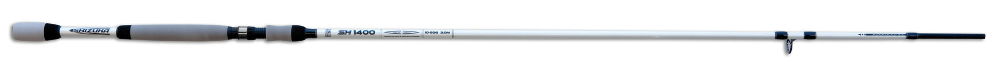 Canna da pesca, con fusto in Special Carbon. Ideale per lo spinning, sia nei laghi al black bass, sia in mare alla spigola. Shizuka Sh1400 monta anelli con pietra SiC legati a doppio ponte, è dotata di manico in EVA extra confortevole e portamulinello a vite. È eccellente se utilizzata con esche di gomma.